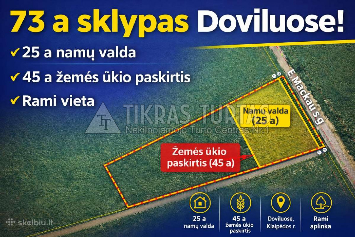 Sklypas puiki galimybę naudoti, investuoti ar ateityje realizuoti dalimis.